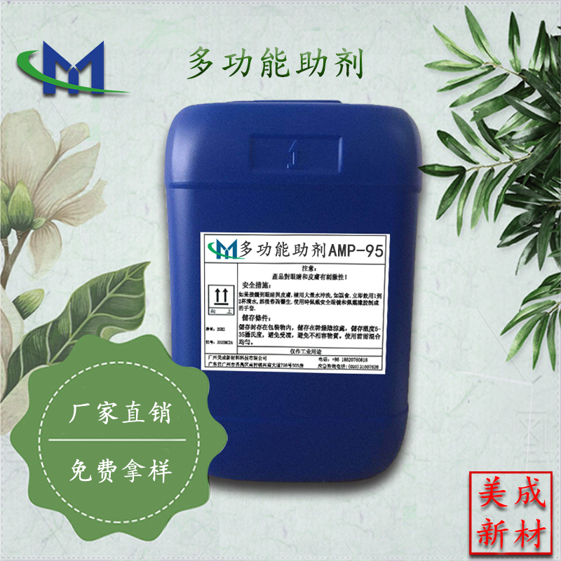 使用AMP-95作为水性聚合物的多功能助剂,除了可以改善涂料性能之外,还可大大降低成本,因为多功能助剂AMP-95的所需用量比其它胺类低得多。不仅拥有分散、增稠、调节pH值、不变色等优异功能,而且还具备抗微生物(杀菌)特性,同时也能减少VOC(挥发性有机化合物)总量,有助于提升环保性能。
